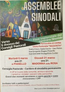 ASSEMBLEA SINODALE Il 21 Marzo 2024 si è tenuto alla Madonna della Rosa la seconda Assemblea Sinodale della Unità Pastorale “NAZARETH” con tema “Verso il rinnovo dei Consigli Pastorali”